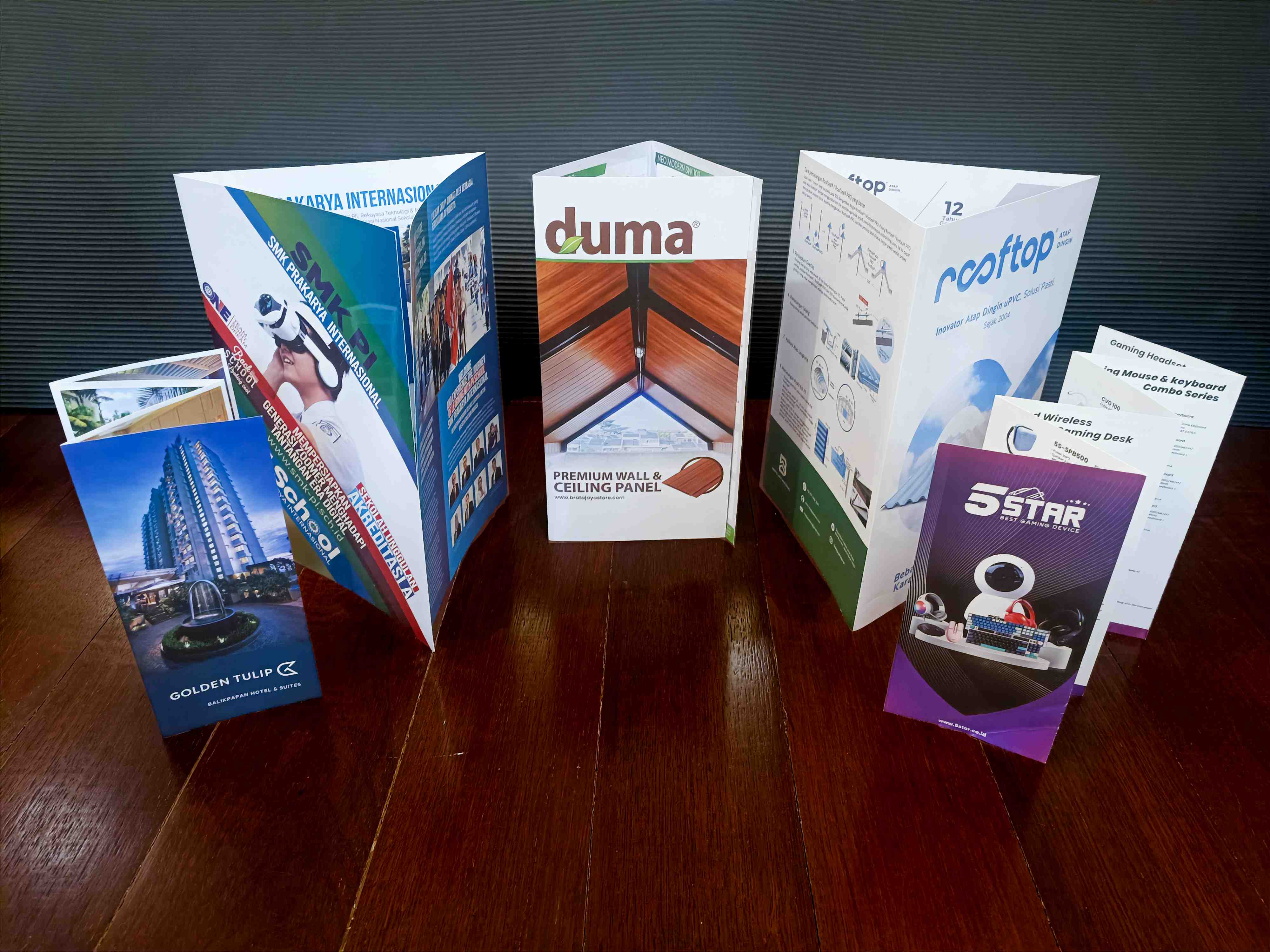 Di Cetakindo, kami menyediakan berbagai jenis brosur lipat custom: