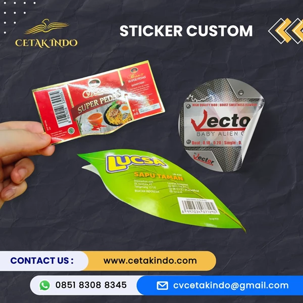 Stiker custom bisa digunakan sebagai alat promosi yang hemat biaya. Stiker yang ditempel pada produk, packaging, atau media lainnya menjadi sarana pemasaran visual yang efektif.